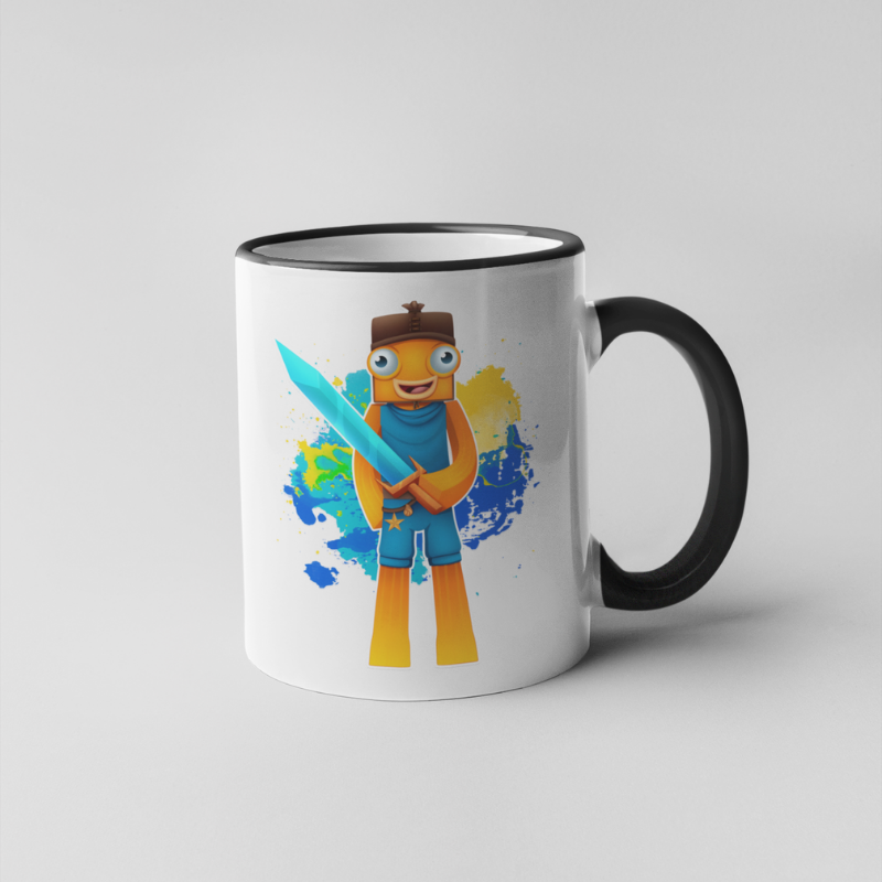Biały kubek ceramiczny z kolorowym uchem – grafika „Farell”